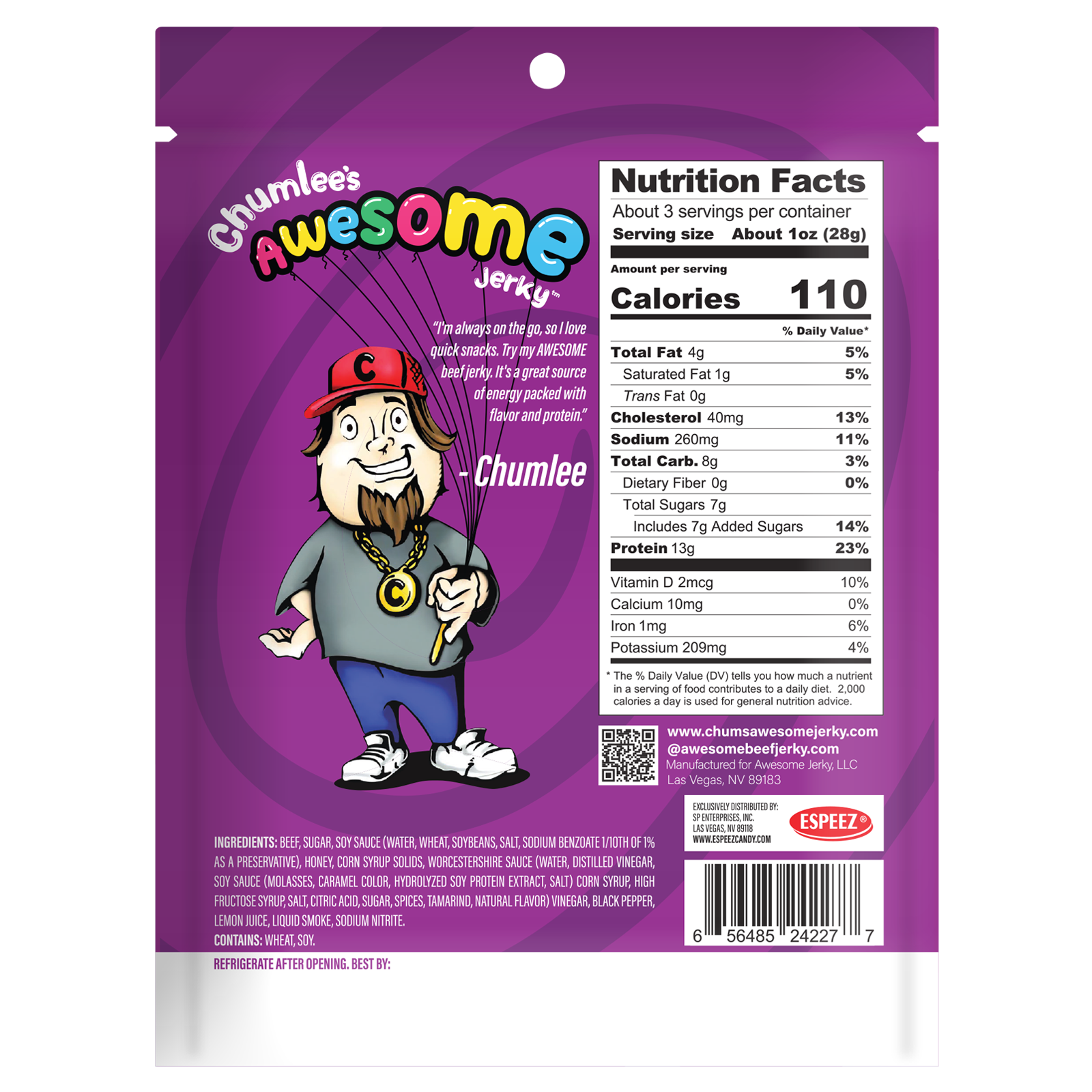Why try Chum’s Awesome Jerky? It's created by well-known celebrity, Chumlee. He is always on the go and loves quick snacks. He wanted to share his secret spice blends and recipes, so everyone will enjoy a delicious and healthy snack.
